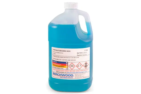 Ideal para: Solución tradicional para pátina, ideal para lograr un atractivo recubrimiento marrón en superficies de latón, bronce y cobre ya sea sólidos o galvanizado.
