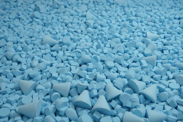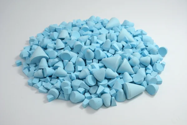 Apariencia: Forma sólida, color azul en diferentes formas y tamaños.