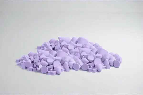 Apariencia: Forma sólida, color morado en diferentes formas y tamaños.